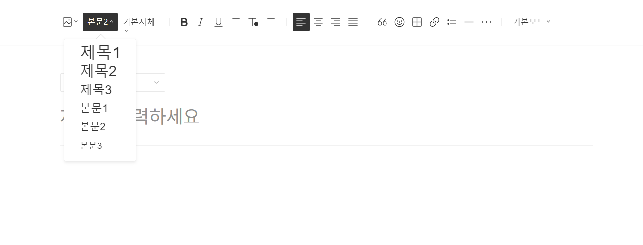 HTML은 HyperText Markup Language를 간단하게 적은 것이다. 굳이 우리말로 옮기면 <초월 문서에 표시를 달 수 있는 언어>쯤 된다. 종종 잊어버리는데 Markup언어이므로 태그를 잘 활용하면 논문처럼 상당히 체계적인 글을 쓸 수 있다. 글을 입력할 때 그림과 같이 제목과 본문을 따로 설정해 줄 수 있다. 여기서 제목 1, 2, 3을 택하면 자동으로 제목(heading)을 나타내는 h 태그를 입력해 준다.
